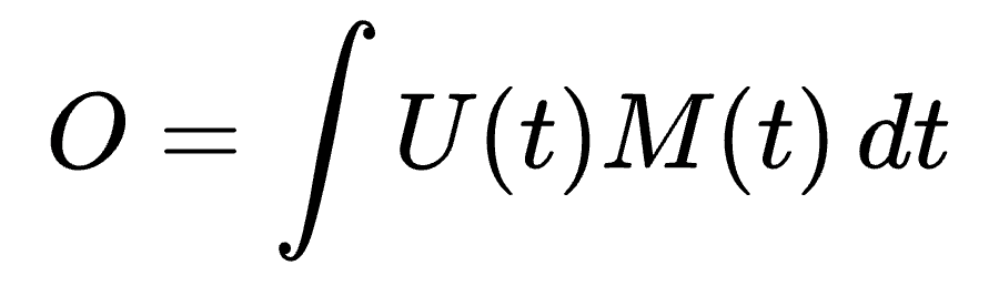 You can think of this integral as adding up all of the little overlap contributions over the whole conversation. If there is no overlap at all, U(t)M(t) = 0 everywhere and the integral is 0.